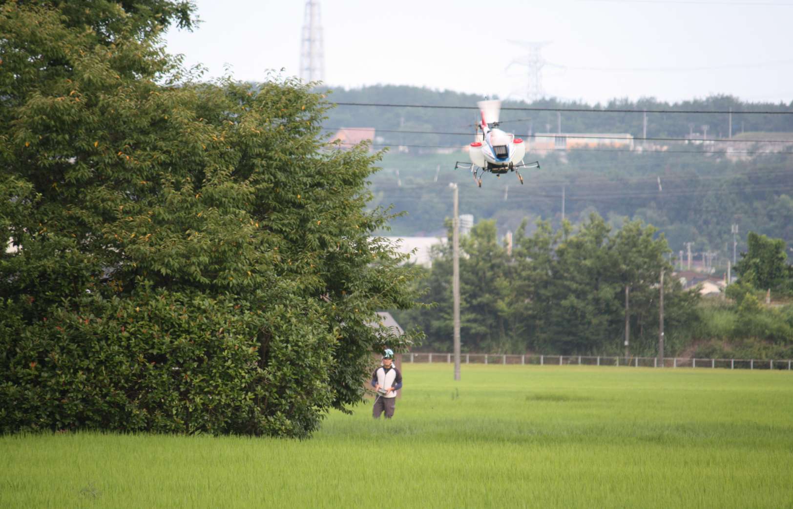 作物から3~4mの高さからローターのダウンウォッシュ(吹き降ろし風)効果により葉裏や株元まで農薬がしっかりと付着します。